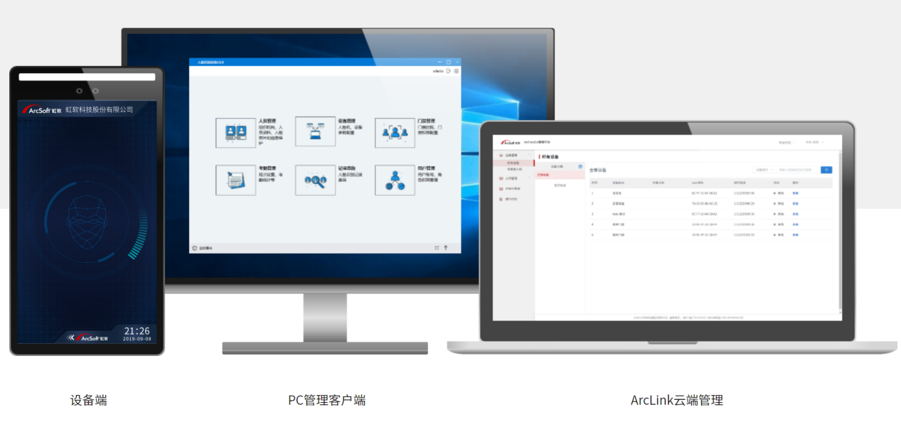 中心管理端:拥有人员注册、考勤统计、出入查询等功能,也可以云端进一步对接已有的业务平台。