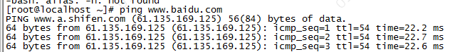 4. 重启network服务(service network restart)后,使用ping命令查看联网状态。