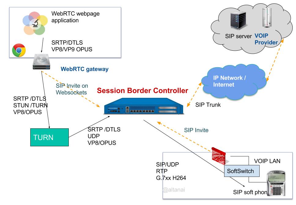 | STUN (session traversal utilities for NAT) – UA itself detect presence of a NAT and learn the public IP address and port assigned using NAting. Then it replaces device local private IP address with it in the SIP and SDP headers. Implemented va STUN, TURN, and ICE. (-) doesnt work for symmetric NAT (single connection has a different mapping with a different/randomly generated port) (-) doesnt work when there are multiple addresses of a end point. TURN (traversal using relay around NAT) or STUN relay – UA learns the public IP address of the TURN server and asks it to relay incoming packets. (-) since it handled all incoming and outgong traffic , it must scale to meet traffic requirments and should not become the bottleneck junction or single point of failure. | UA is not concerned about NAT at all and communicated using its local IP port. The border controller implies a NAT handling compoenets such as an application layer gateway (ALG) or universal plug and play (UPnP) etc which resolves the private and public network address mapping by act as a back to back user agent (B2BUA). |