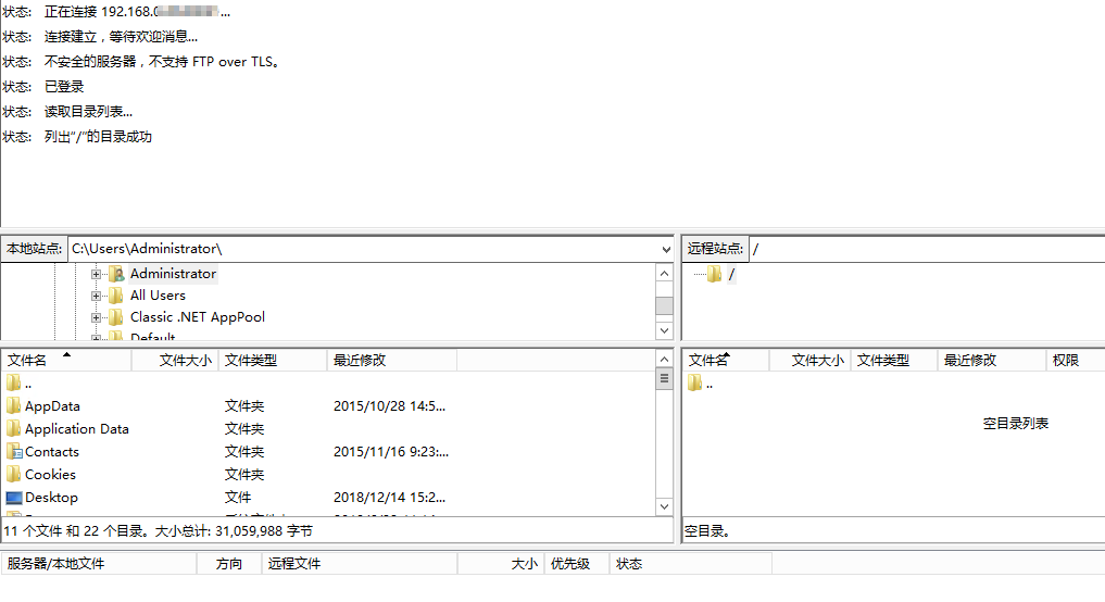 随便用一个ftp客户端访问测试是否连接成功即可!我用的是FileZilla Client