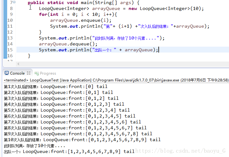 一个队列的基本操作就是入队,出队,获取队列大小,判断是否为空等等;这篇博客就是自己实现一个基于数组的队列和循环队列。