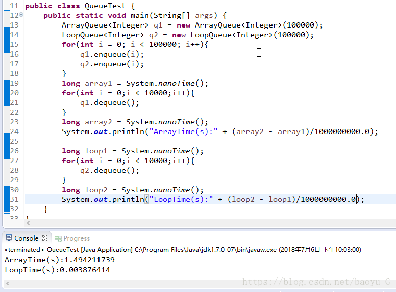 下面通过测试比较一下两种队列的效率: