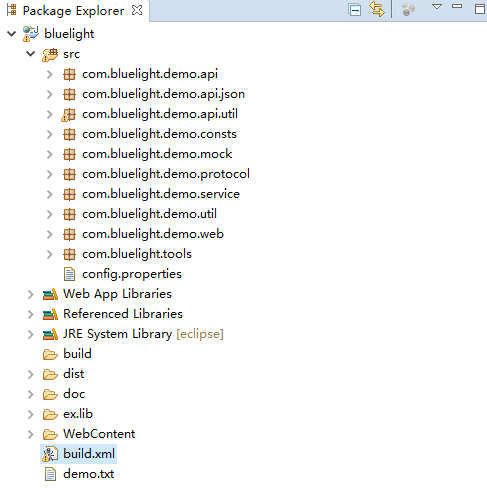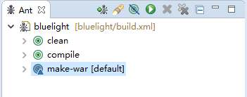 BlueDemoServer代码包不是通过eclipse中的run来编译的,而是通过Ant插件来编译,编译脚本是build.xml,操作步骤如下: