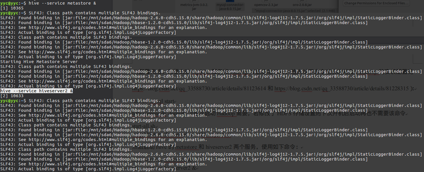 然后启动Hive的metastore和hiveserver2两个服务,使用如下命令: