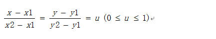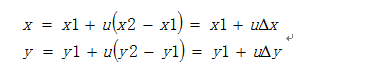 设Δx=x2-x1,Δy=y2-y1,参数u在0~1之间取值 ,任何线段上的点P(x,y)都可以满足下面的方程(2):