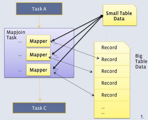 那么,能否省略 reduce 端,直接在 map 端执行的“map side join”操作呢??答案是,可以的。