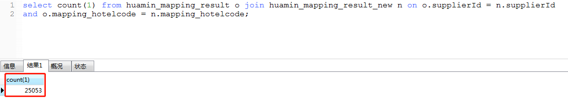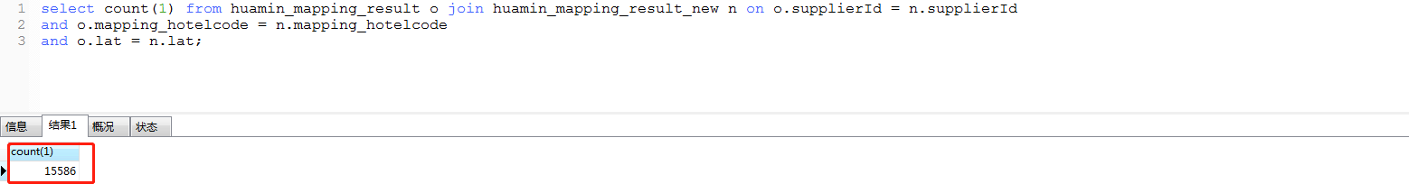 3.现在我们将条件改成 o.lat != n.lat,查出来的结果是不是应该显示 25053-15586的差值呢?