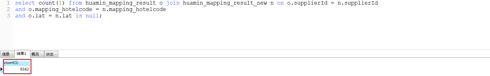 4.再看下面这条sql语句,我们过滤掉 o.lat和n.lat 都是空的情况: