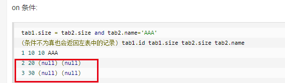 1、on 条件是在生成临时表时使用的条件,它不管 on 中的条件是否为真,都会返回左边表中的记录。----此时如果返回的是left join 的左边表数据(同理right join 为右表),即使on的条件进行了筛选,也会返回不符合数据,但是结果关联的另一个表为空