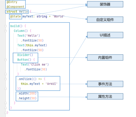 我们用一个简单示例,来说明ArkTS的基本组成: