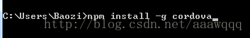npm install -g cordova ( Mac使用: sudo npm install -g cordova )