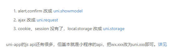 另外因为uni-app 是参考了小程序的,但是其中除了追加了一些api外,基本上与小程序中提供的api一致,只是前缀改了