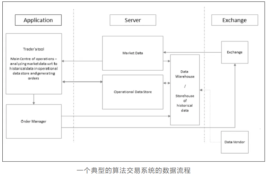 首先是交易系统从交易所收集价格数据(如果要进行跨市套利,系统需要从多个交易所收集价格数据),从路透社、彭博社等新闻机构收集新闻数据,有些算法交易系统还可能会从网络上收集数据进行深度分析,如情感分析(sentiment analysis)等。