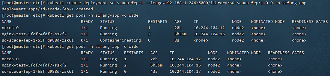 kubectl create deployment sd-scada-fep-1 --image=192.188.1.246:6000/library/sd-scada-fep:1.0.0 -n sifang-app