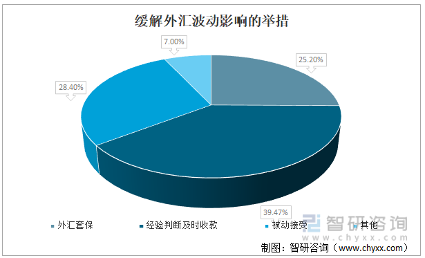 从中国跨境卖家为缓解外汇波动影响的举措来看,外汇套保占25.20%;经验判断及时收款占39.47%;被动接受占28.40%;其他占7.00%。
