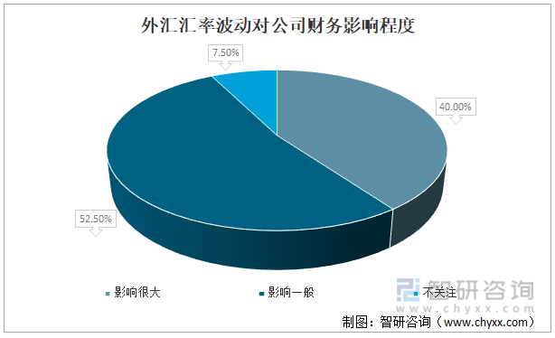 从外汇结算方面来看,有40%的企业觉得汇率波动仍给企业财务的影响较大;影响一般的点52.5%,不太关注的仅占7.5%。