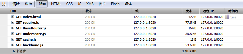 可以看到所有依赖的文件都依次下载了。在BaseRouter内部就可以使用Backbone了。