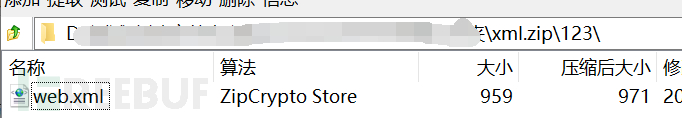 网站目录肯定会涉及到多级目录,我们也同样进行模拟。在文件夹中创建一个二级目录“123”,并将一个web.xml放入该二级目录中,然后打包成加密ZIP。