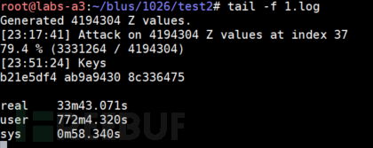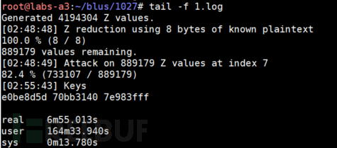 time bkcrack -C flag_360.zip -c flag.txt -p plain1.txt -o 1 -x 29 37346636 > 1.log&//查看爆破进度