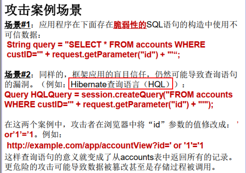 无论使用了哪个ORM框架,都会支持用户自定义拼接语句,经常有人误解Hibernate,其实Hibernate也支持用户执行JDBC查询,并且支持用户把变量拼接到SQL语句中。