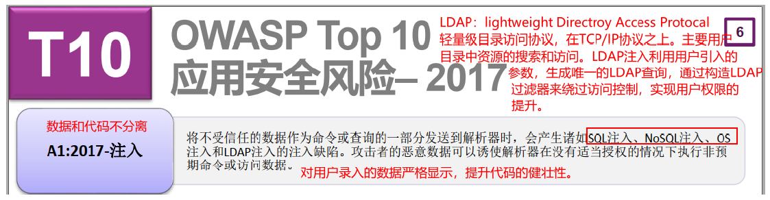 除了SQL注入外,在Web安全领域还有其他的注入攻击,这些注入攻击都有相同的特点,就是应用违背了 “数据与代码分离”原则。