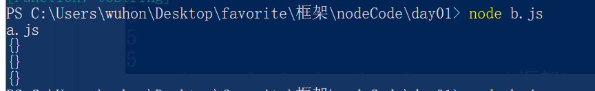 运行b.js,结果如下:
