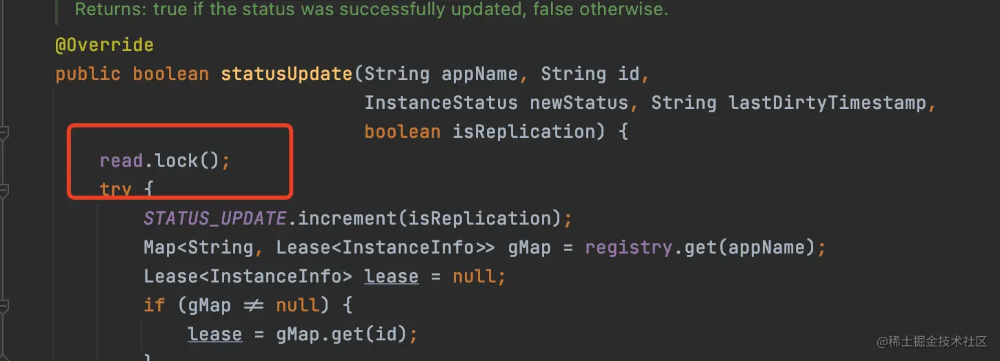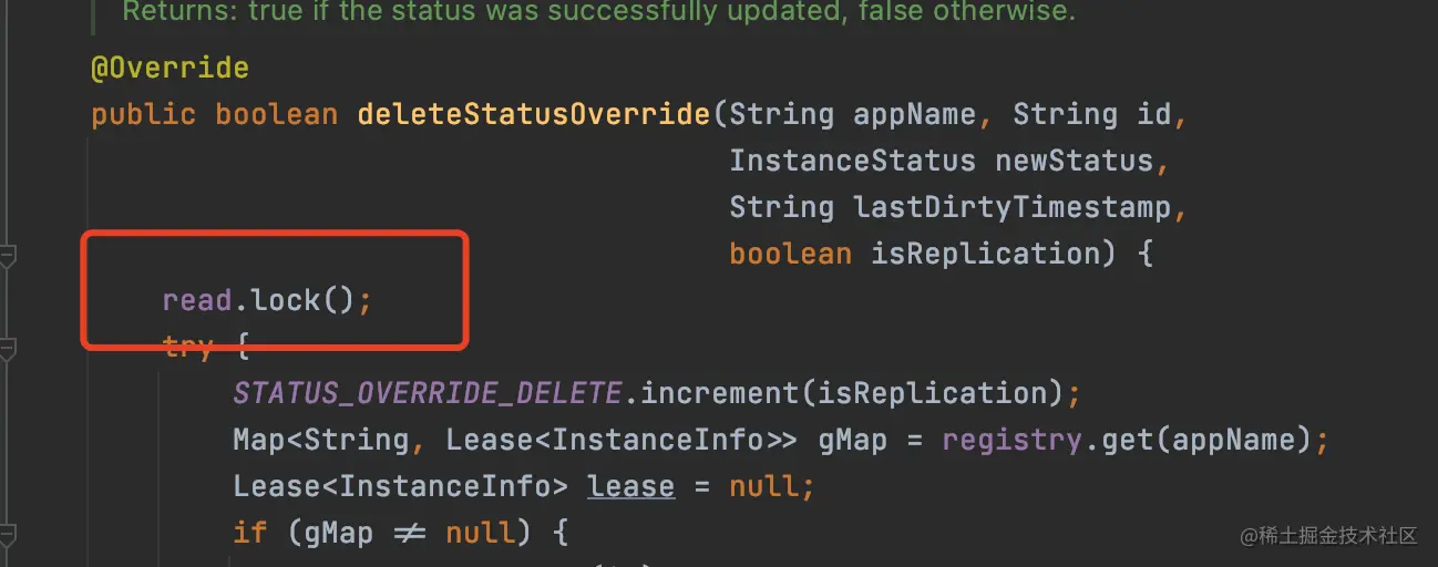 以上就是多情画笔最近收集整理的关于Eureka读时加写锁,写时加读锁,到底是故意为之还是一个bug?的全部内容,更多相关Eureka读时加写锁内容请搜索靠谱客的其他文章。