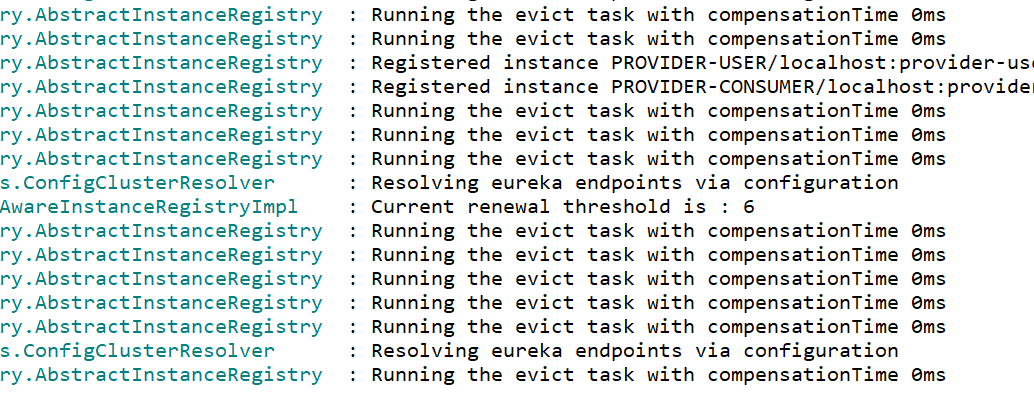 完成初步的配置与代码书写,启动四个服务:Eureka-Server、Eureka-Servertwo、provider-consumer、provider-user