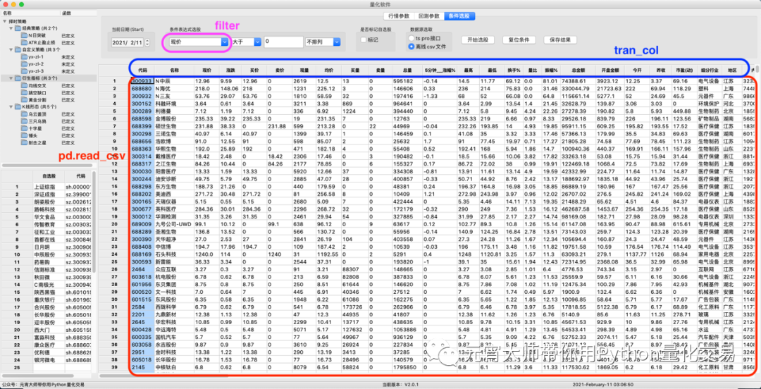 需求是在V2.0工具的“条件选股”页,导入通达信下载的沪深A股全市场数据,作为选股的数据。