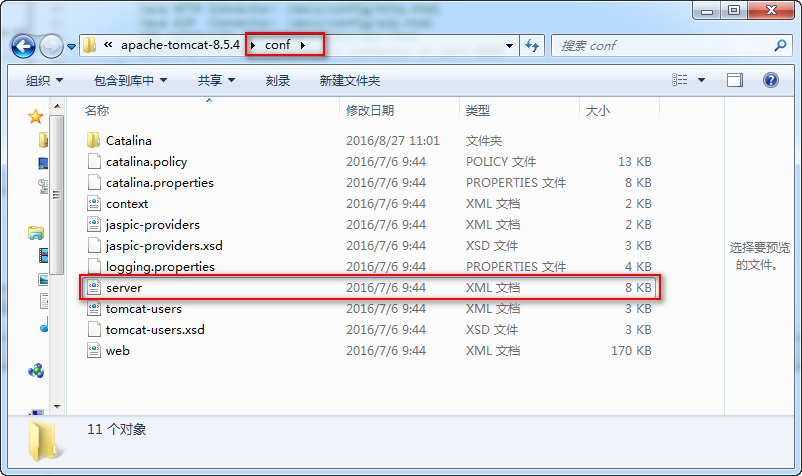 Tomcat的所有配置都放在conf文件夹之中,里面的server.xml文件是配置的核心文件。