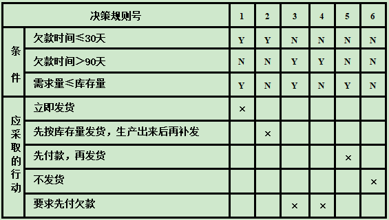 | 决策规则号 | 1 | 2 | 3 | 4 | 5 | |