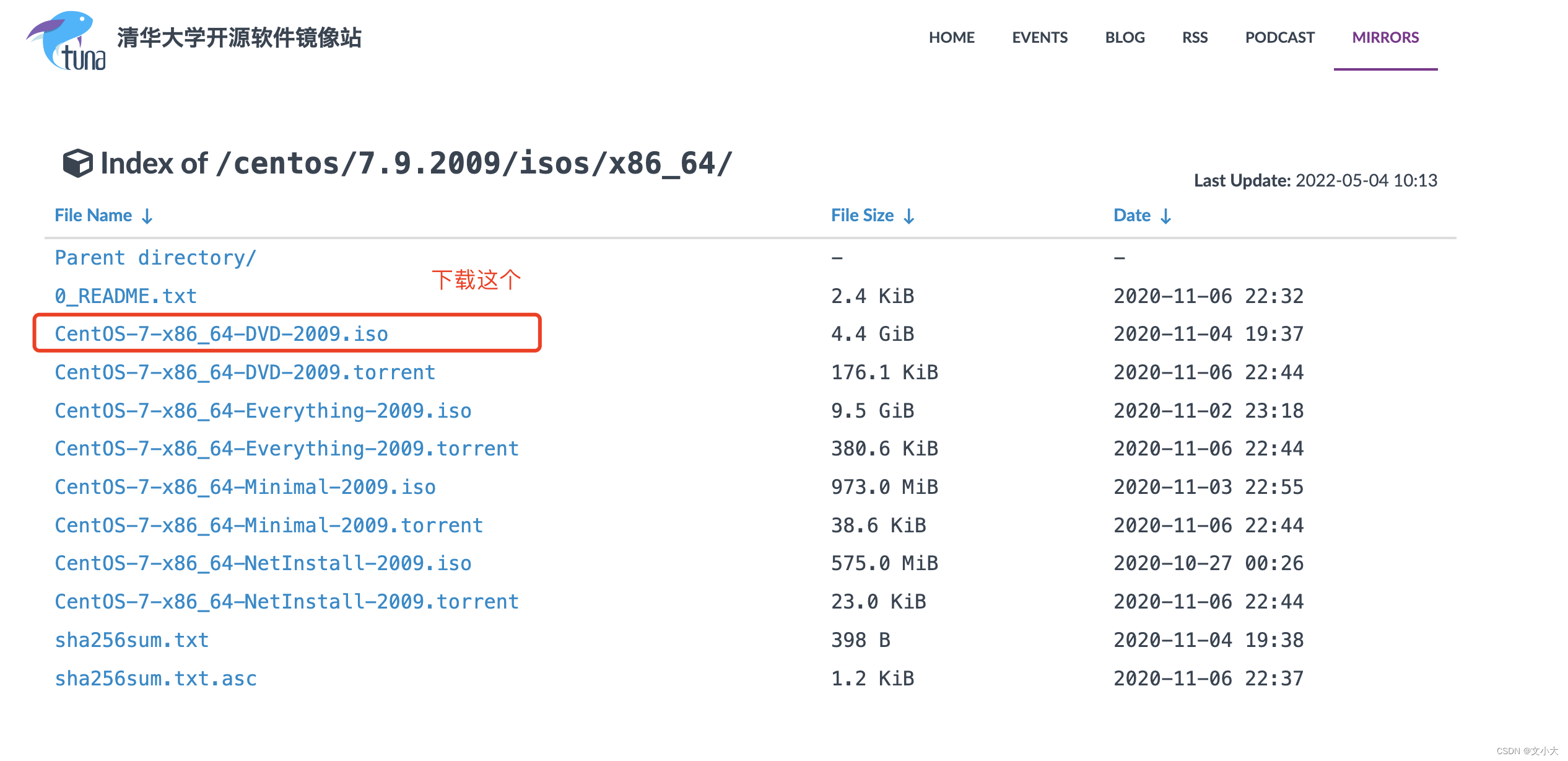 官网:Index of /centos/7.9.2009/isos/x86_64/ | 清华大学开源软件镜像站 | Tsinghua Open Source Mirror