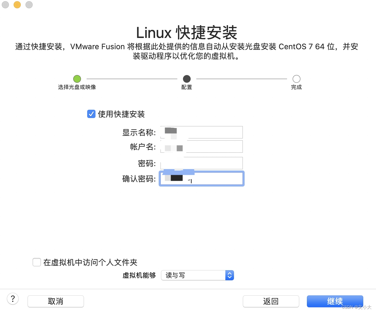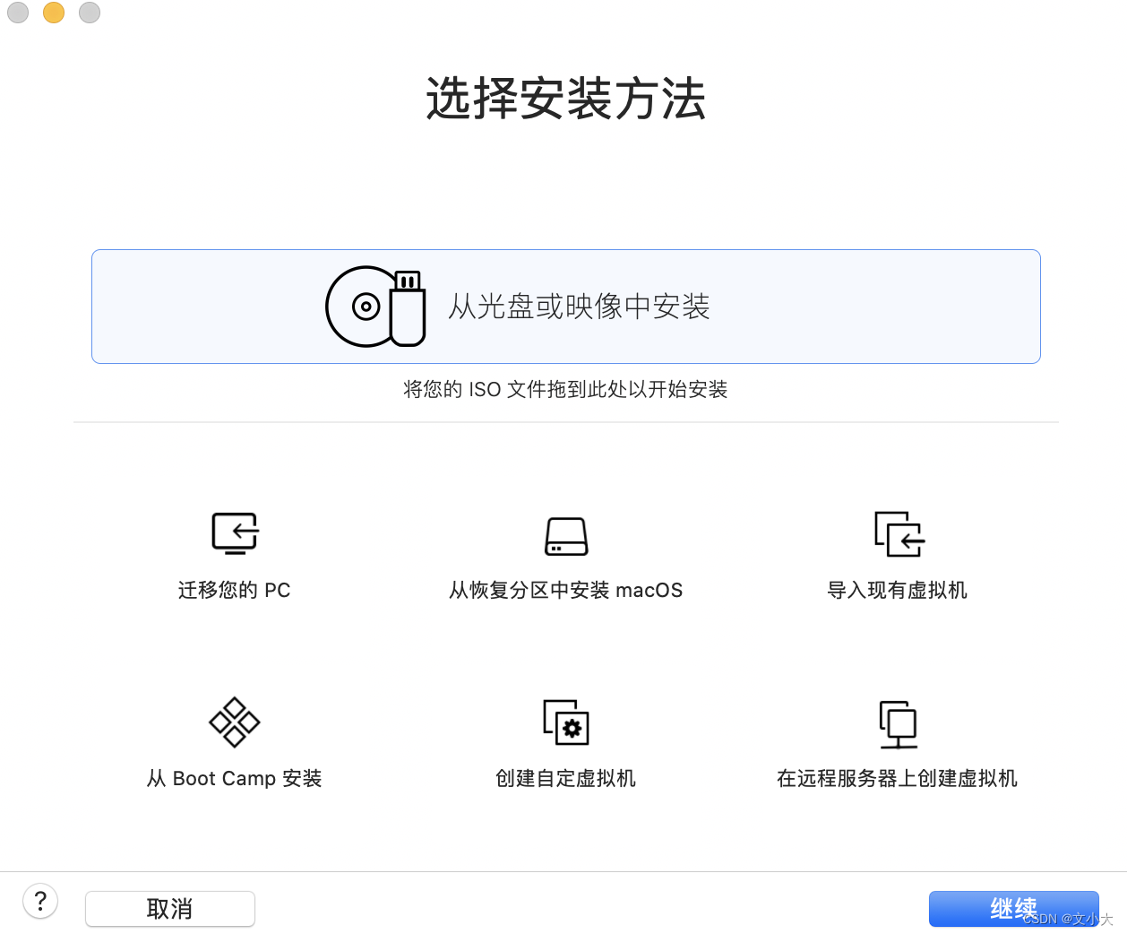 1、找到下载好的centos7的镜像,拖到图中,点击继续