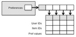 那么接下来怎么办?在推荐器中调用这样的对象是十分平常的事情,但是我们不难看出,在一个偏好集合之中,用户的ID或者项目ID很多都是冗余的。