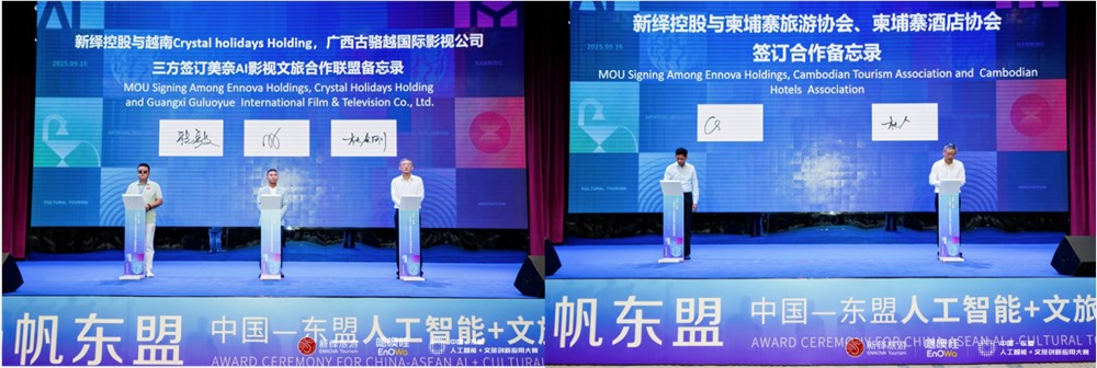 秉承“造智能、用智能”的办赛理念,嗯噢哇与10家优秀企业达成签约,共同推进旅游专业能力平台建设;与柬埔寨旅游协会签署协议,推动AI技术在柬埔寨旅游业应用;在越南美奈启动东盟首个“AI+文旅+影视基地”,探索“技术+内容+场景”融合新模式。