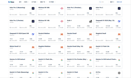成本与能力的透明化:平台直接提供了各模型的API价格、上下文长度、多模态支持等关键商业与技术维度。产品经理在规划一个AI功能时,可以瞬间进行初步的成本测算与可行性评估,极大降低了预算的不确定性和决策风险。