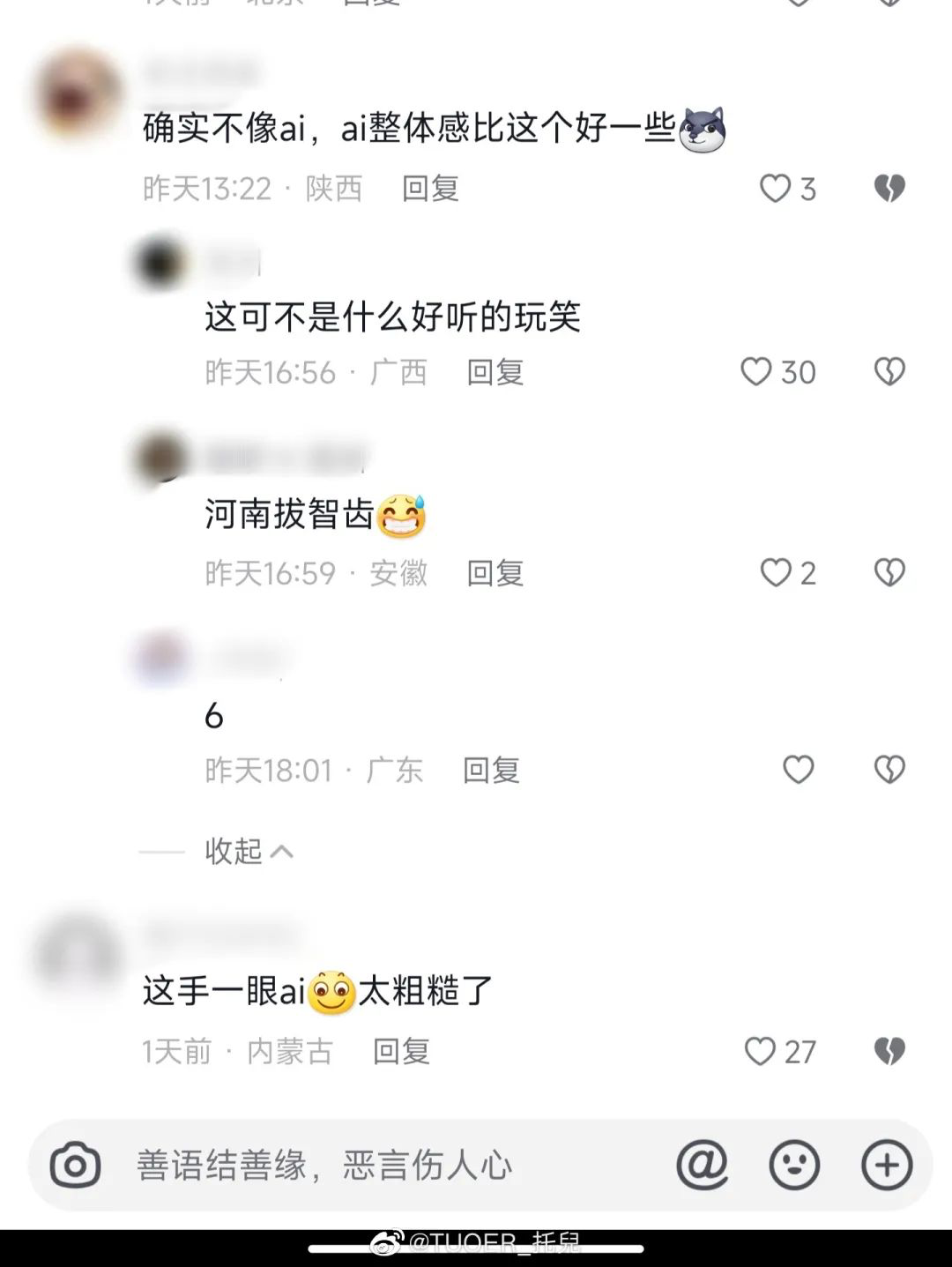 葡萄君:另外一个现象是,现在只要有人发一张图,评论区都是在讨论这是不是AI画的,没有人再去关注画师的笔触、构图和思想表达了。