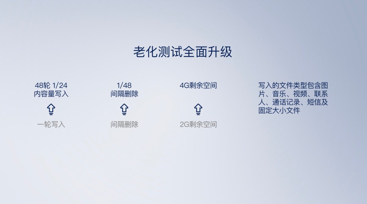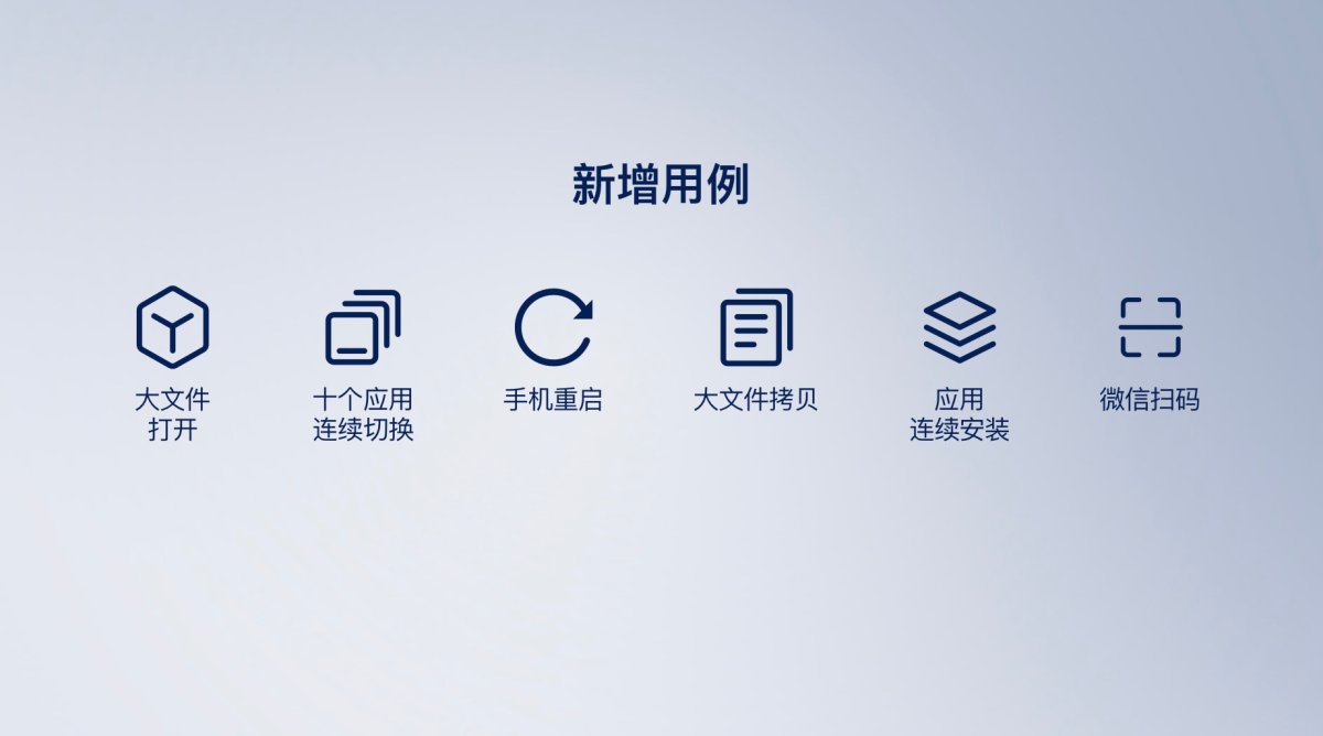 此外,通过与手机使用 3 年以上用户的调研沟通,对使用场景也进行了优化,新增了大文件微信打开用例、十个应用连续切换、手机重启、大文件拷贝、应用连续安装、微信扫码等使用场景的测试。