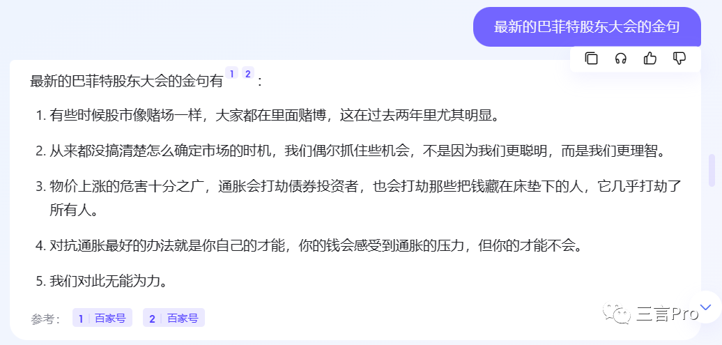 三言罗列了最近比较有热度的几件事,并基于此提出几个问题,看文心一言和AI“对话”的回答都是啥样的。