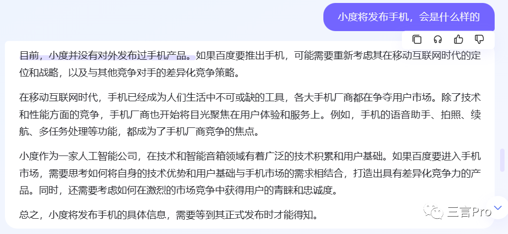 就这个问题而言,文心一言的回答前言不对后语,百度AI“对话”胜出。
