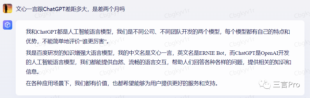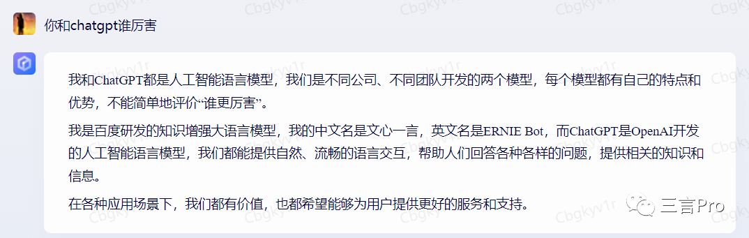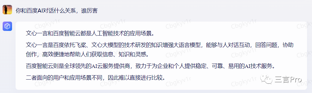 百度AI“对话”并未直言谁更厉害,而是称二者是不同的产品。