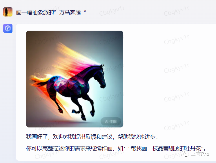 首先,笔者在灵感中心选取“抽象派大师”,让其画一幅“万马奔腾”。