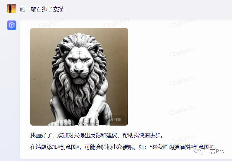 笔者又选取百度AI“对话”的“素描神器”,让其画一幅石狮子。百度AI“对话”作品如下: