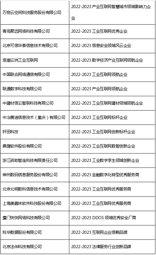 附2:2022- 2023 互联网产业创新优秀成果