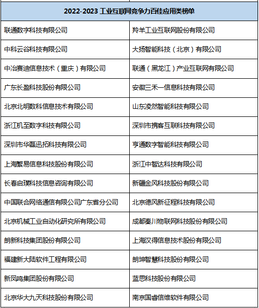 附1: 2022- 2023 工业互联网竞争力百佳