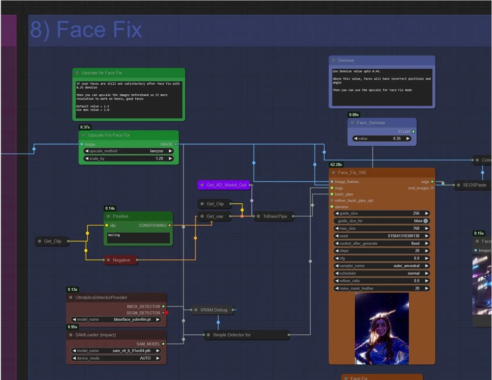 面部去噪:使用0.35–0.45左右。在较高的面部上可能会出现渲染不正确的情况,并且还可能出现滑动面部问题。