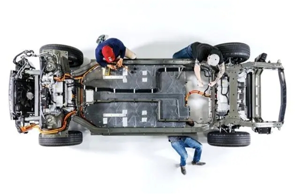 滑板平台,顾名思义,就是将电动车的电机、电池组和所有的传统部件,都尽量集成在一个看似滑板的底盘上。通过这种方式,车辆上装和下装之间的开发独立性被彻底放开。
