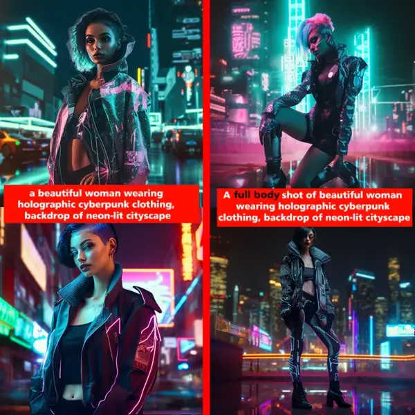 提示词:AfullbodyshotinMJ(cyberpunkwoman)