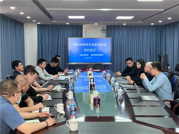 4 月 28 日,赤峰市教育局新东方智慧教育举办了协同赤峰教育高质量发展签约仪式。赤峰市教育局党组书记、局长刘玉海,市教育局党组成员、副局长于福奎,局机关各科室和市教育科学研究中心主要负责人,以及新东方教育科技集团助理副总裁、新东方智慧教育事业部总经理柴明一率队出席了本次签约仪式。 会议开始,于福奎副局长介绍了赤峰市推动教育高质量发展背景及教育质量三年提升行动计划。于福奎表示,通过新东方智慧教育的助力,必将为今后赤峰市推动教育高质量发展提供可靠保障。希望通过这次协同合作,增进彼此了解,增进各方教育界人士对教育事业的热情,使赤峰教育迈入新的台阶、达到新的辉煌。 柴明一总经理表示,在实施科教兴国、人才强国的战略驱动下,新东方智慧教育始终坚持以创新人才培养为目标。将系统谋划、统筹新东方智慧教育资源,全力协助赤峰教育实现高质量发展。此外,新东方智慧教育也将通过与中国教师发展基金会的合作项目 “中小学教师数字化能力与科学素养提升计划” ,助力赤峰教育实现均衡发展。