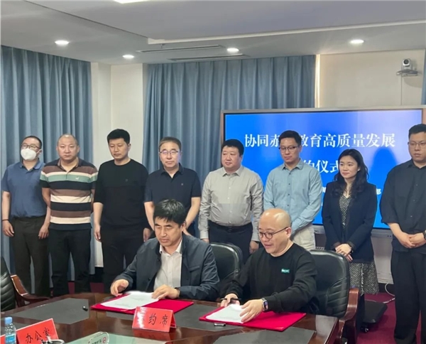 会议最后,刘玉海局长与柴明一总经理签订了协同赤峰教育高质量发展合作协议。 本次合作,新东方智慧教育与赤峰市教育局将在推进赤峰市教育高质量发展、创新人才培养等方面展开深度协作,为赤峰市教育可持续发展注入新的活力与动力。此次协同赤峰教育高质量发展合作协议的签署,也标志着新东方智慧教育未来将协助赤峰市教育局全面推进教育质量三年提升行动计划实施进程,共同促进赤峰市实现新时代教育发展新变革。